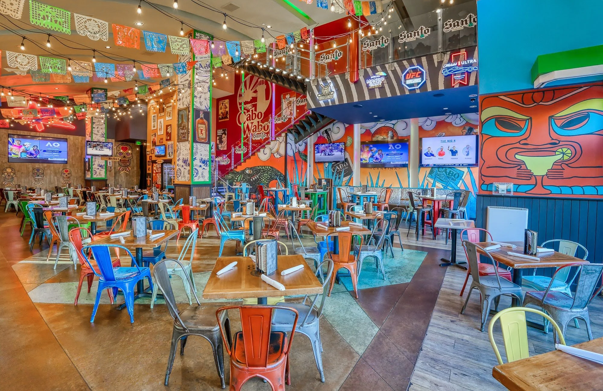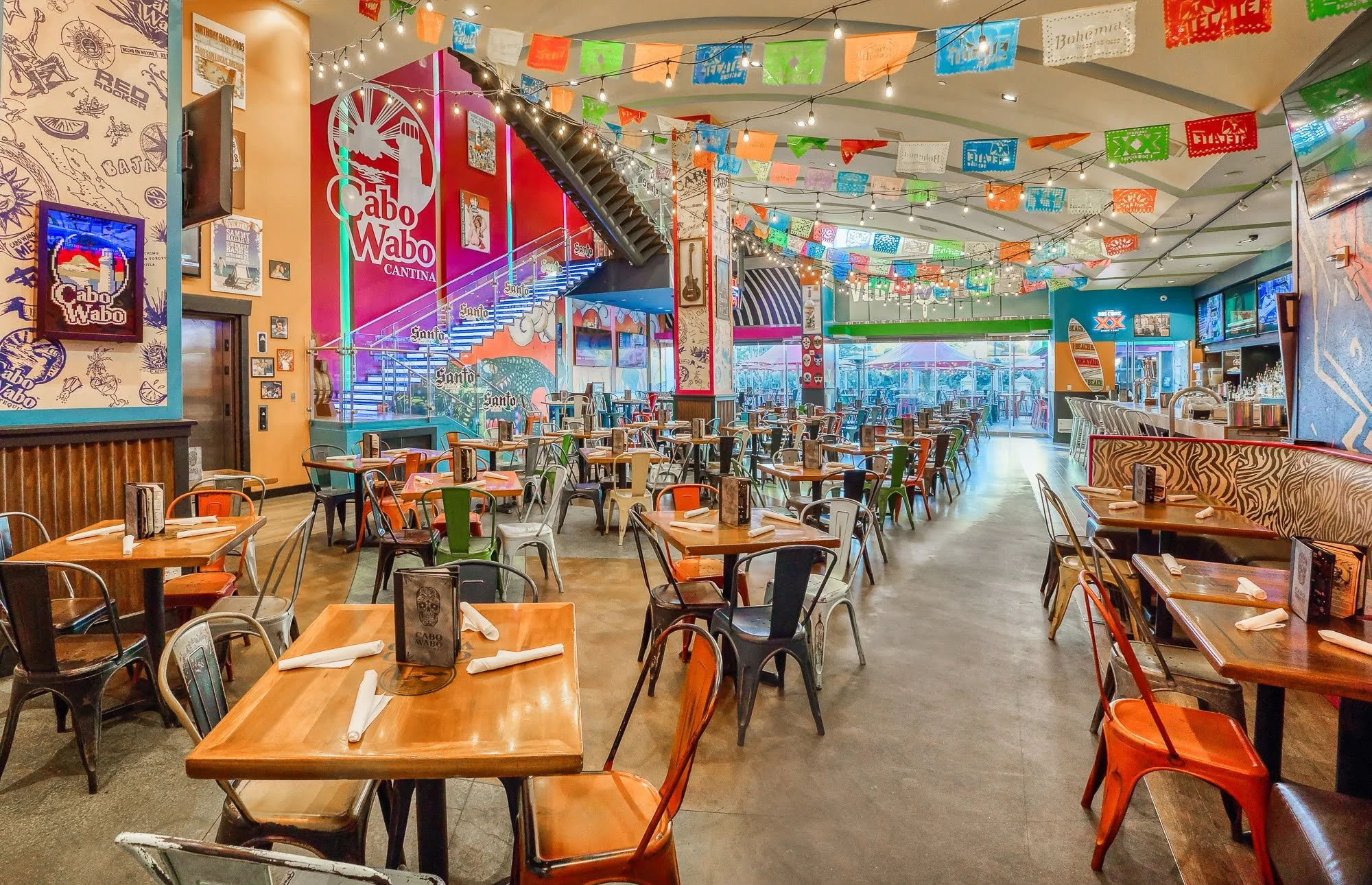 The vibrant heart of Cabo Wabo. Our main dining room features a full bar, customizable layouts, and an energetic atmosphere ideal for receptions, seated dinners, and celebrations of every kind. Combine with the Patio for a seamless indoor-outdoor experience accommodating up to 250 guests.
